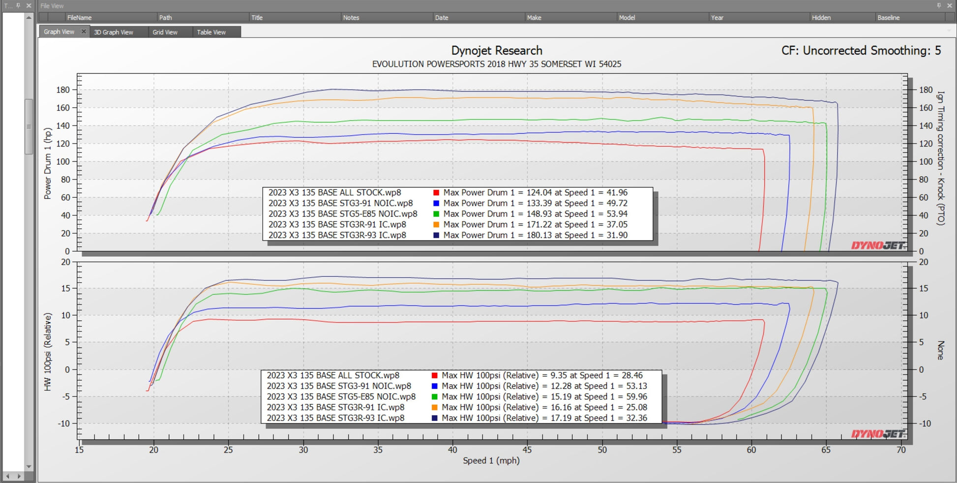 | Stage 5RWi-X85 | E85 | 11 lbs. | 21-24 lbs. | 214 | 260 |