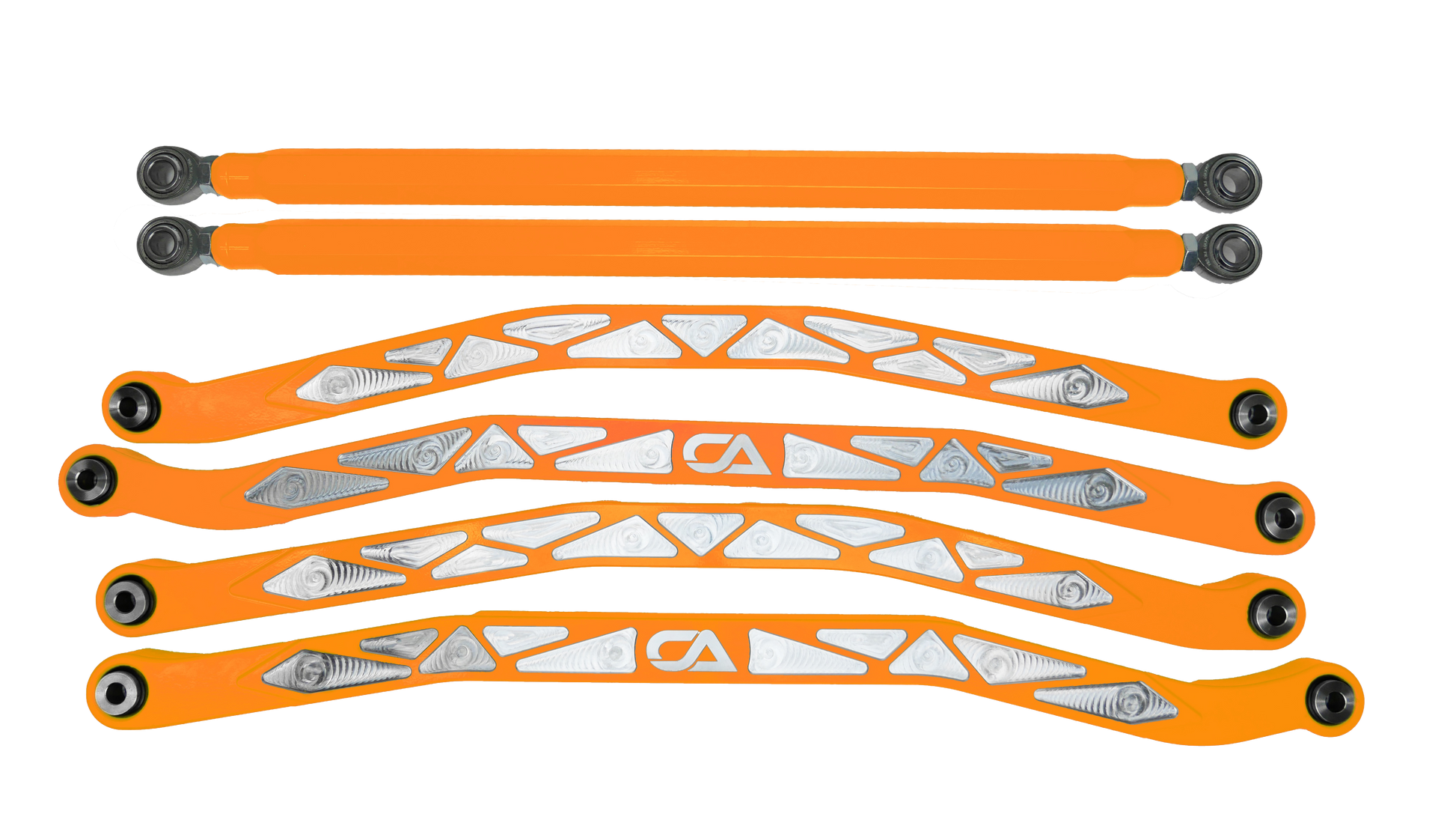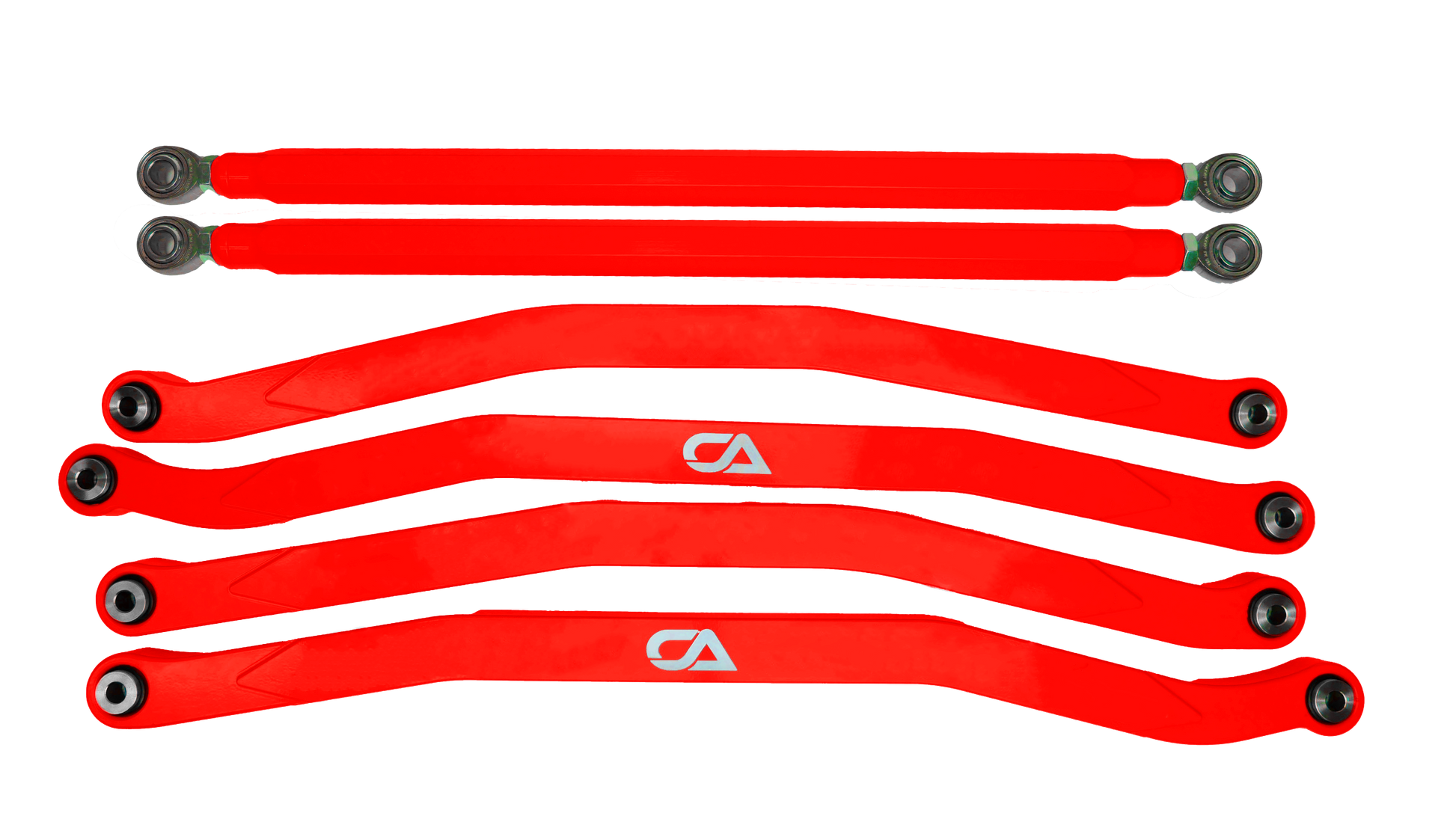 Arching the middle and lower radius rods increases ride height without changing ride geometry. Giving you the most clearance possible, without negatively affecting stability.